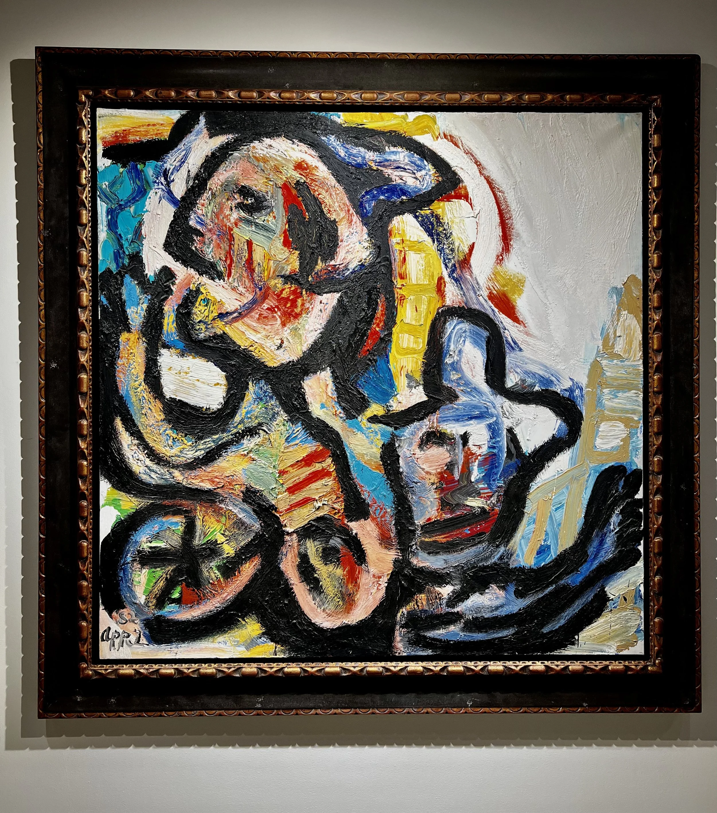 Deep black strokes give vague form to areas of fleshy, layered paints. Moving between figuration and abstraction, Appel only gives the illusion of personages in the chaotic urban landscape. He echoes Jean Dubuffet’s gritty canvases that merge city dwellers into the cityscape to capture the sentiment of the time. Discussing his oeuvre, Appel declared “to paint is to destroy what preceded. I never try to make a painting, but a chunk of life. It is a scream; it is a night; it is like a child; it is a tiger behind bars.”